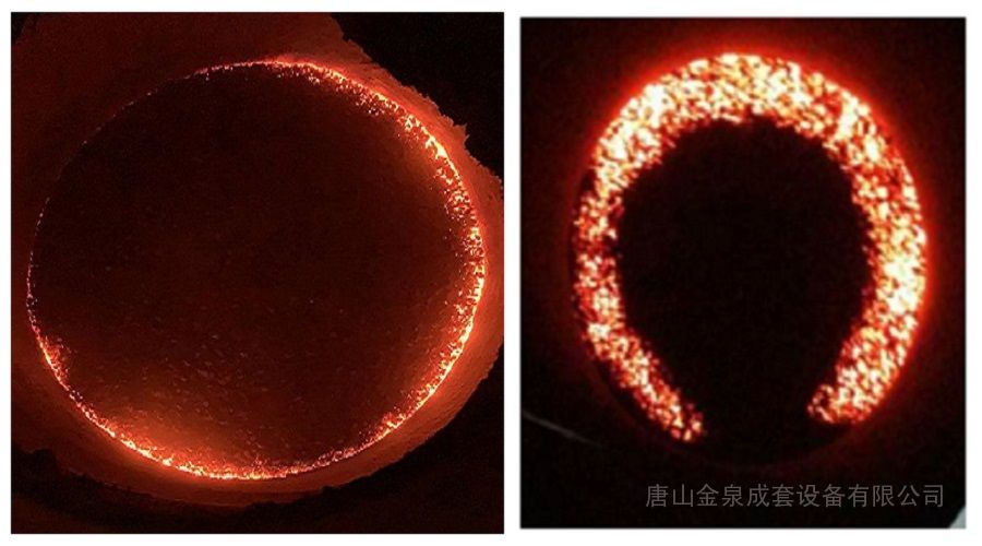 (一)传统石灰窑布料方法的石灰窑料面燃烧情况: