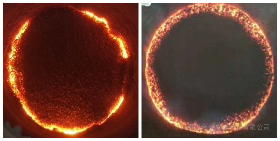 (二)“三环布料法”的石灰窑料面燃烧情况: